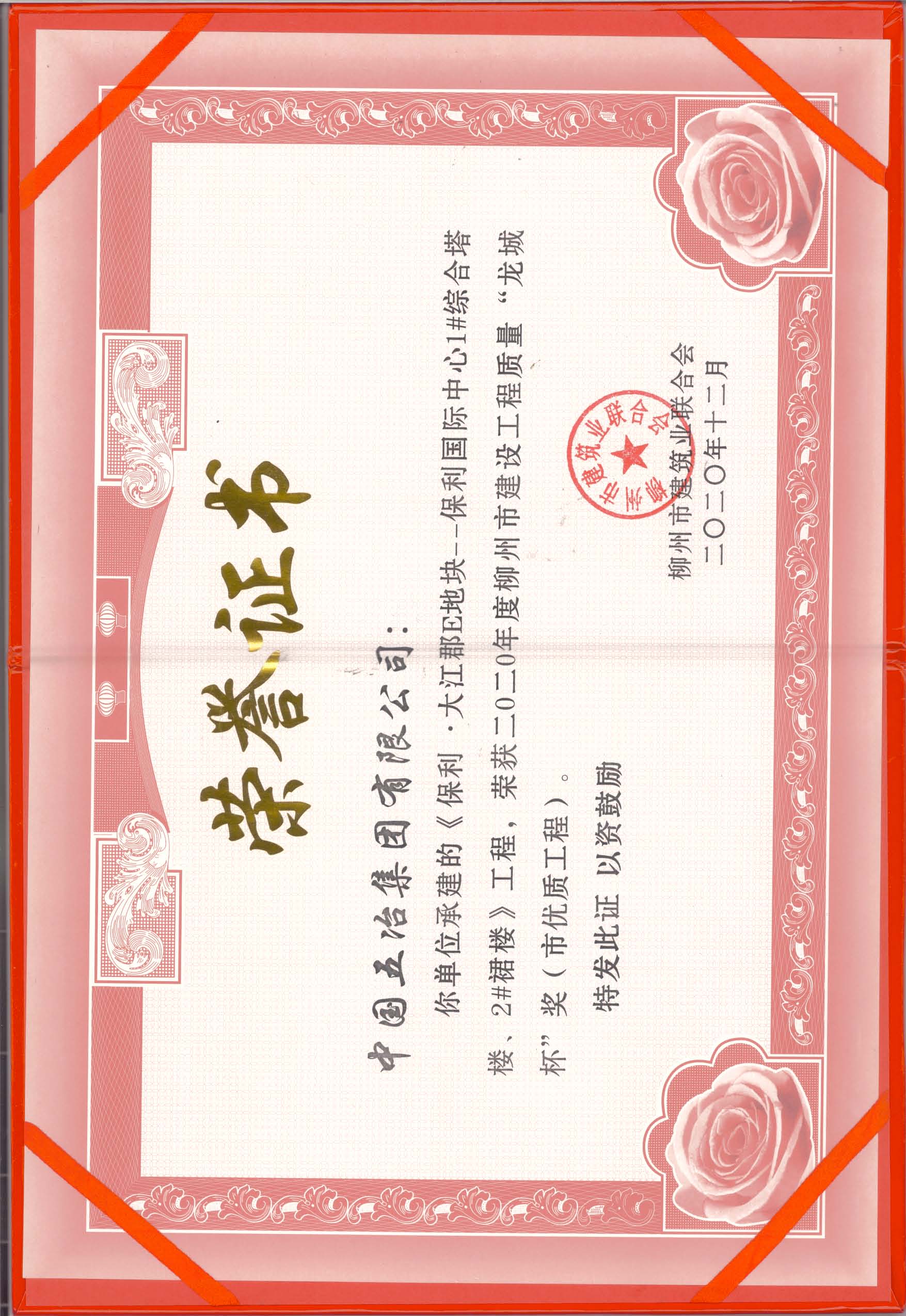 保利.大江郡E地塊-保利國際中心1#綜合塔樓、2#裙樓工程—2020年柳州市建設工程質量龍城杯獎