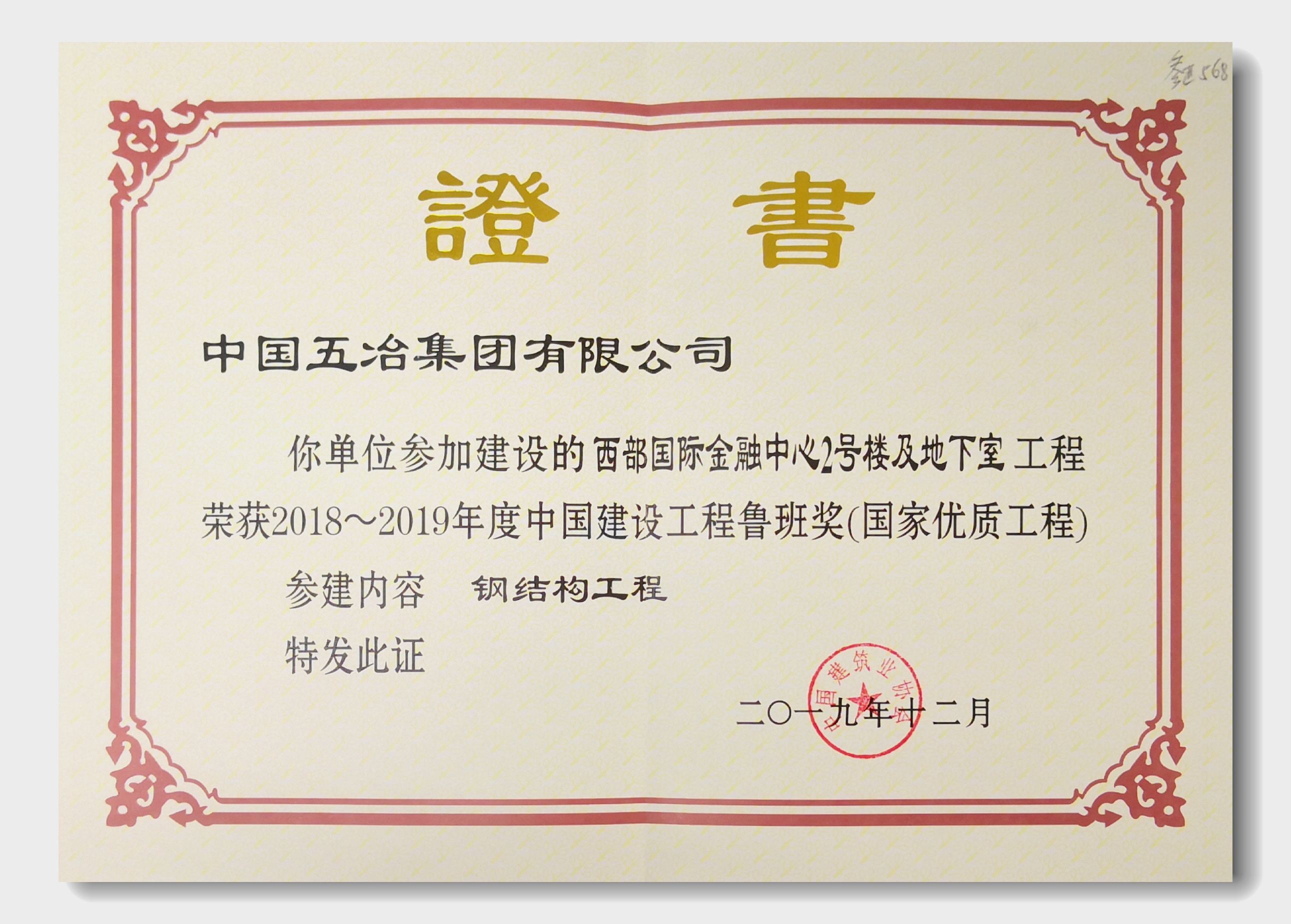 西部國際金融中心2號樓及地下室工程——2019年度魯班獎