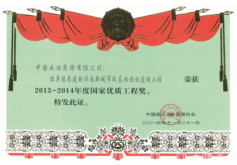 渾南新城市政基礎設施道路工程-2013-2014年度國家優質工程獎