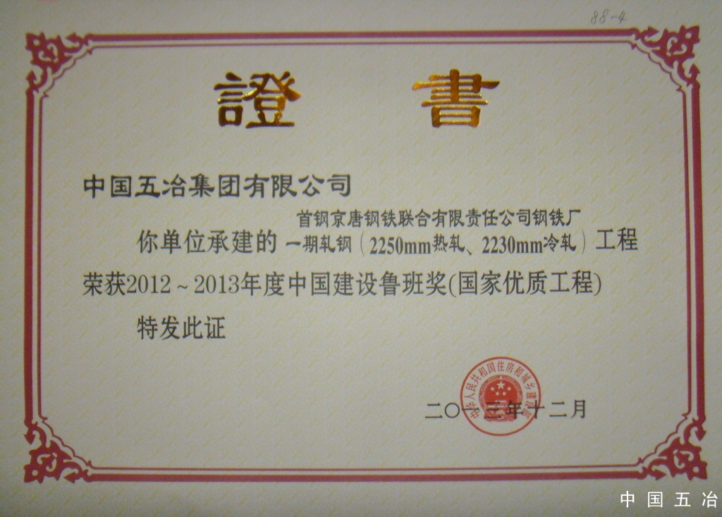 首鋼京唐冷軋一期軋鋼(2250mm熱軋、2230mm冷軋)工程-魯班獎