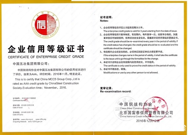中國鋼結(jié)構(gòu)協(xié)會(huì)企業(yè)信用AAA級(jí)