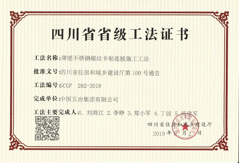 薄壁不銹鋼螺紋卡粘連接施工工法