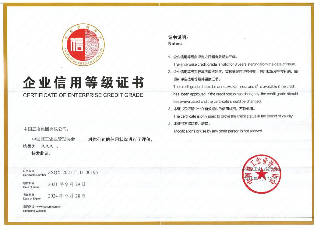 全國施工企業AAA信用等級