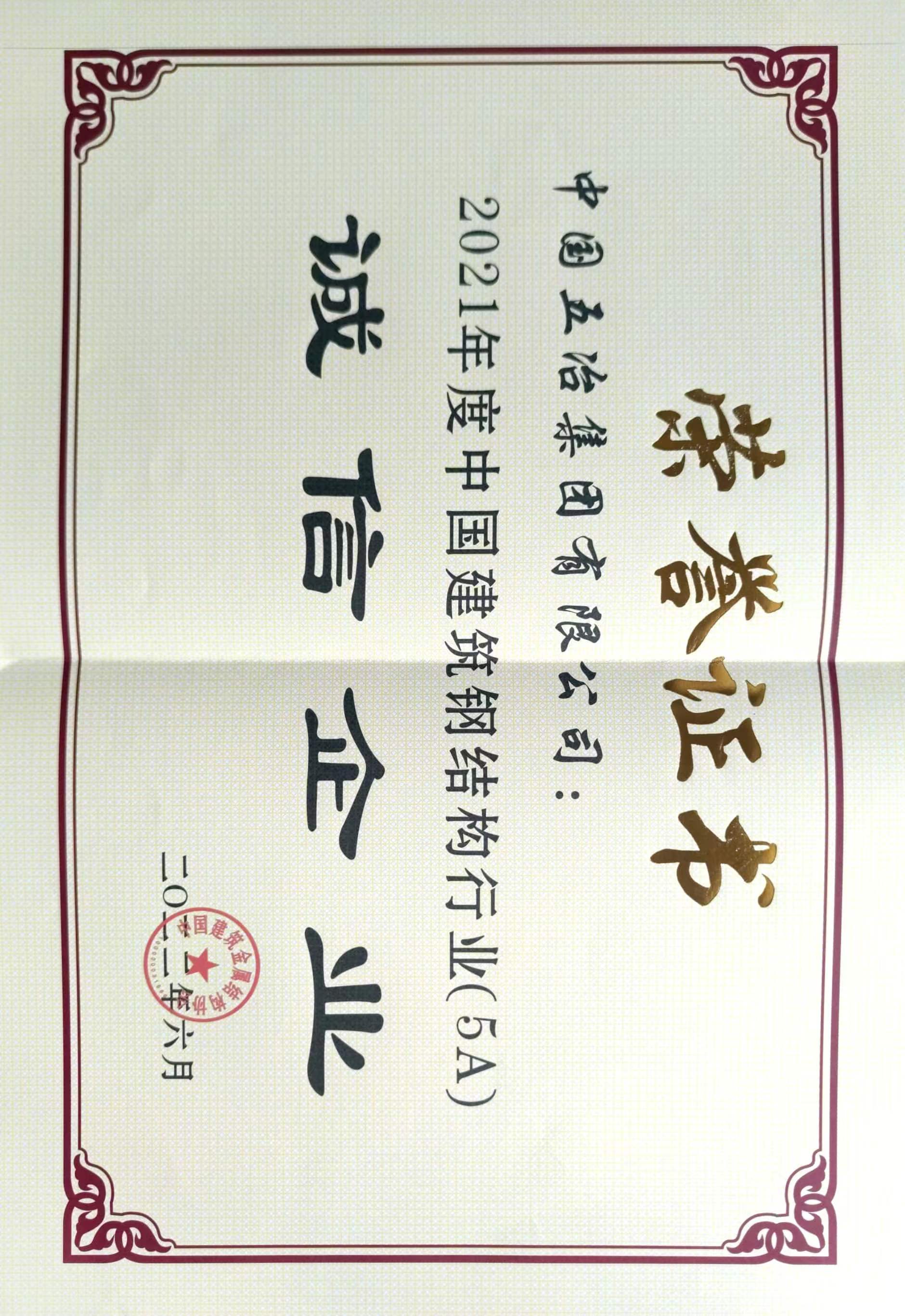 中國建筑鋼結構行業誠信企業