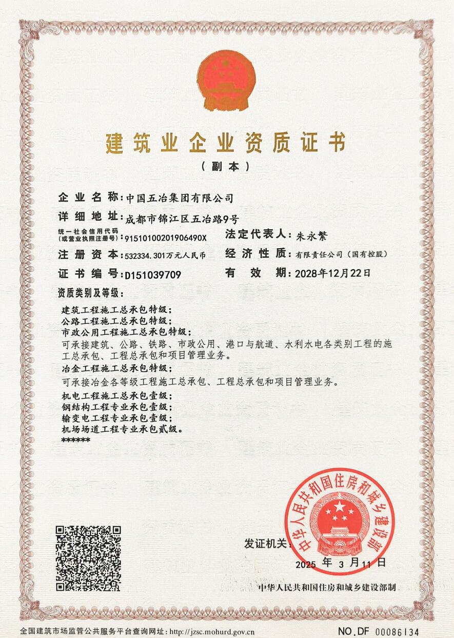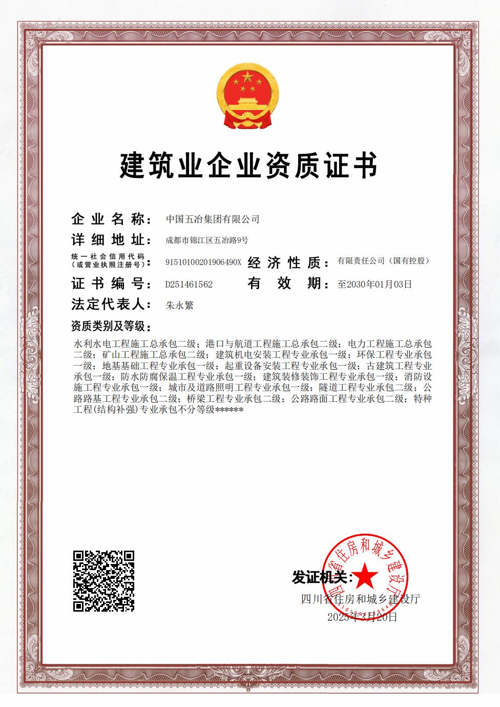 建筑業企業資質證書(建筑、市政、公路、冶金特級)