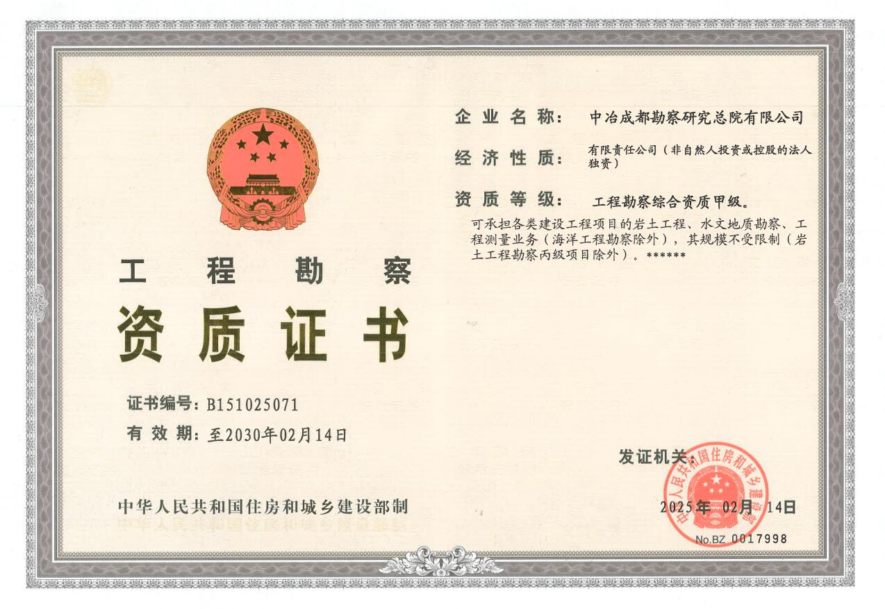 工程設計資質證書(建筑行業、市政行業、公路行業、冶金行業甲級)
