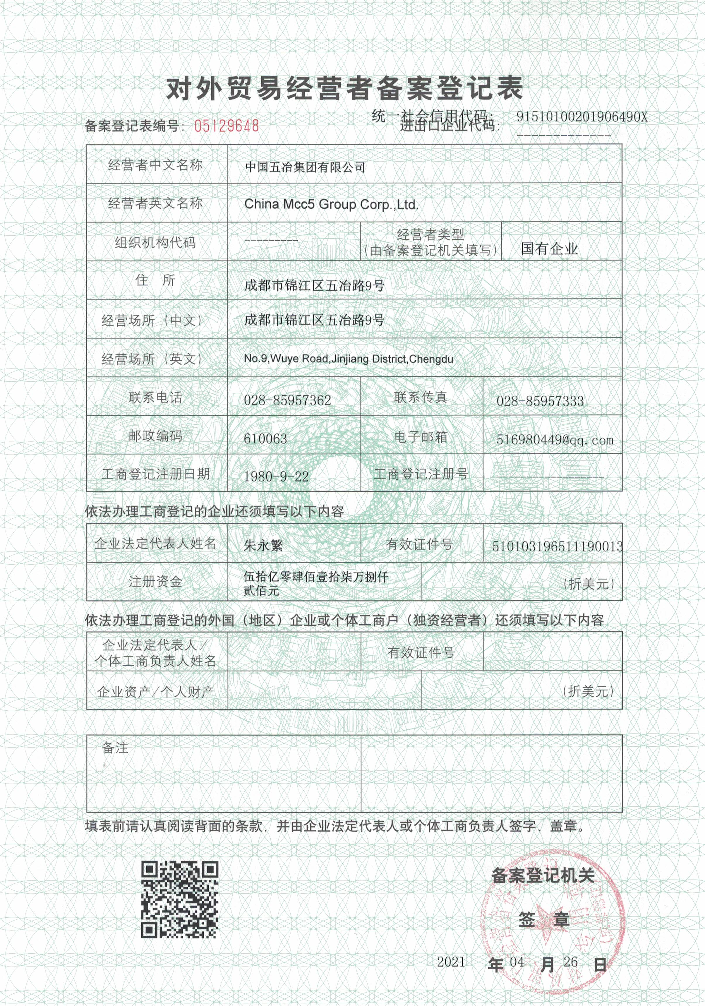 對外貿易經營者備案登記證書