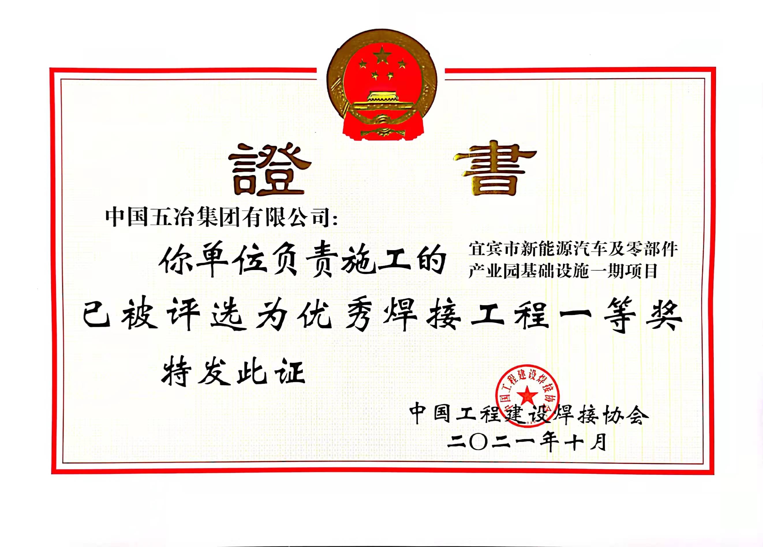宜賓市新能源汽車及零部件產(chǎn)業(yè)園 基礎(chǔ)設(shè)施一期項(xiàng)目-2021年度全國(guó)優(yōu)秀焊接工程一等獎(jiǎng)