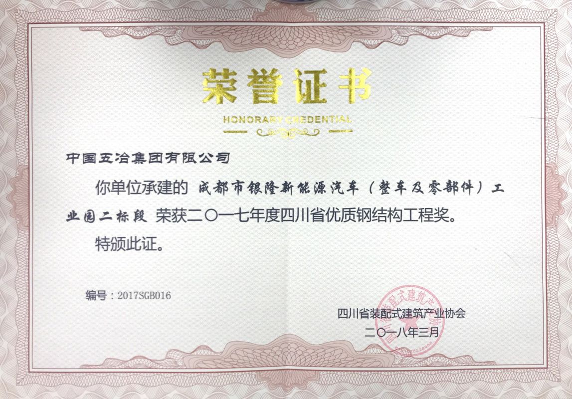 成都市銀隆新能源汽車(整車及零部件)工業(yè)園二標段-2017年度蜀鋼杯