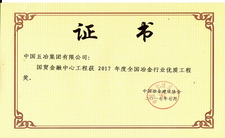 國貿(mào)金融中心工程——2017年度全國冶金行業(yè)優(yōu)質(zhì)工程獎(jiǎng)