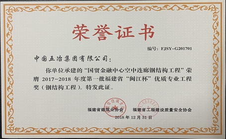 國貿(mào)金融中心空中連廊鋼結(jié)構(gòu)工程——2017—2018年度第一批福建省“閩江杯”優(yōu)質(zhì)專業(yè)工程獎(jiǎng)(鋼結(jié)構(gòu)工程)
