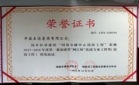 國貿(mào)金融中心消防工程——2017—2018年度第一批福建省“閩江杯”優(yōu)質(zhì)專業(yè)工程獎(jiǎng)(消防工程)