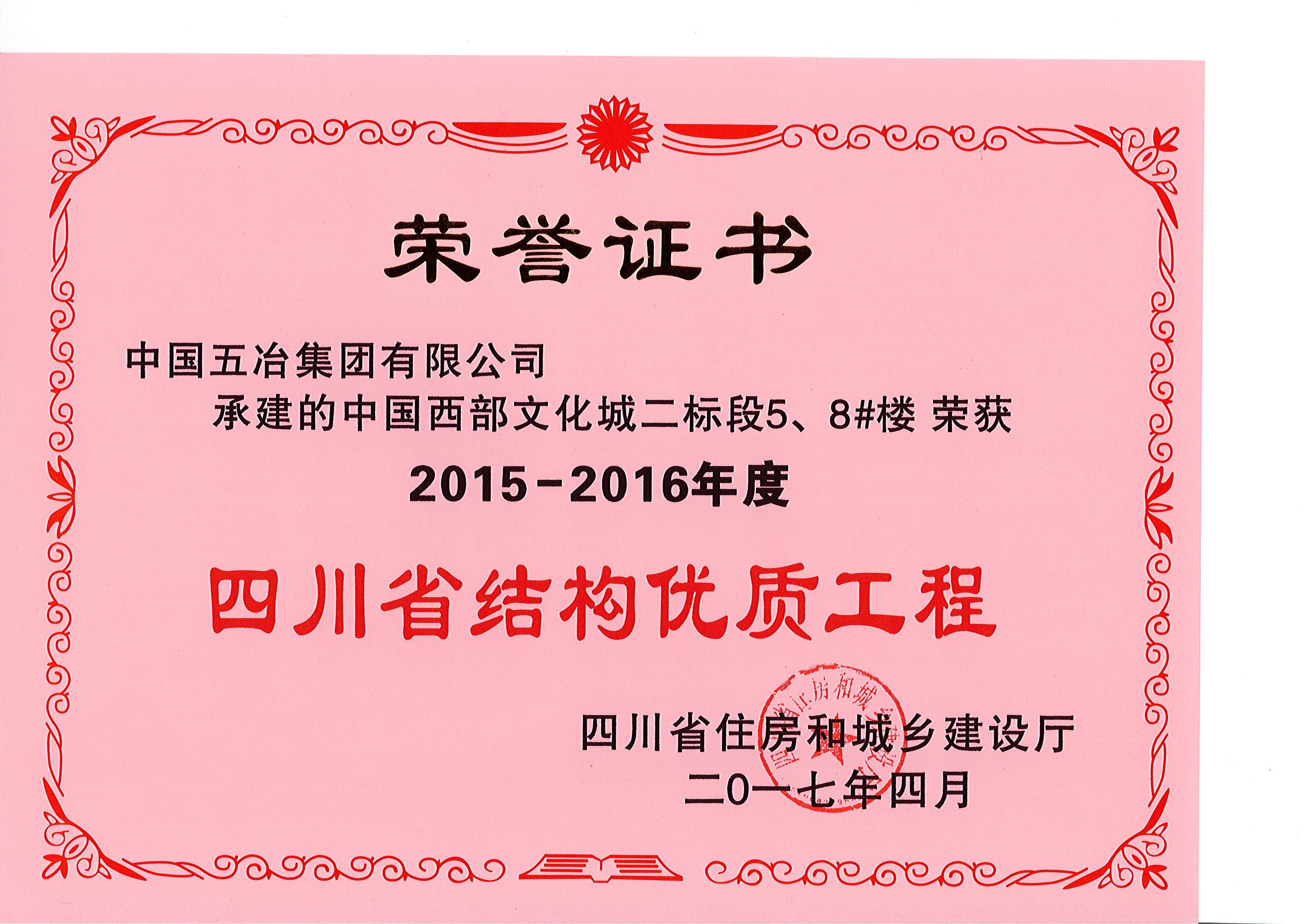 中國西部文化城二標段5、8#樓—2015-2016年度四川省結構優(yōu)質工程