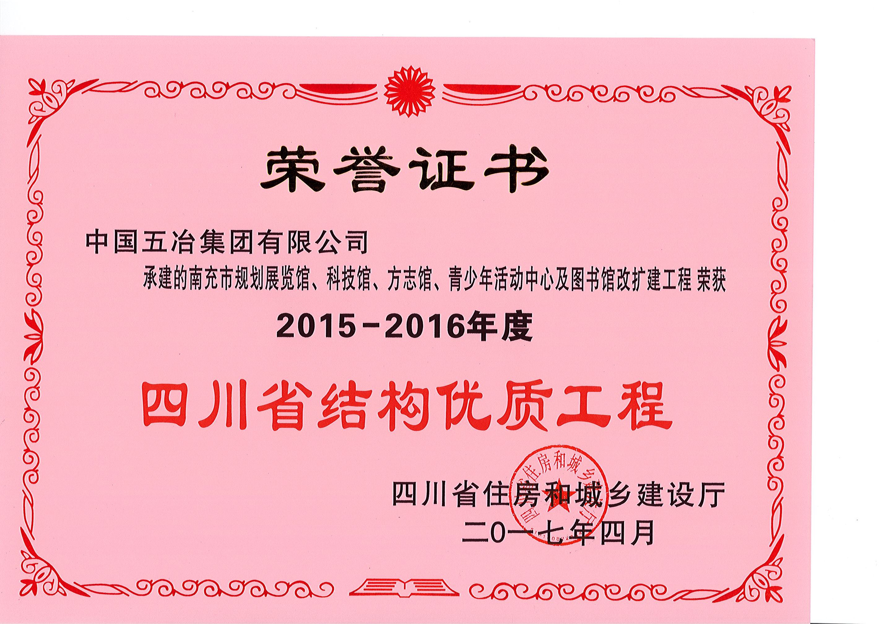 南充市規(guī)劃展覽館、科技館、方志館、青少年活動中心及圖書館改擴建工程—2015-2016年度四川省結構優(yōu)質工程