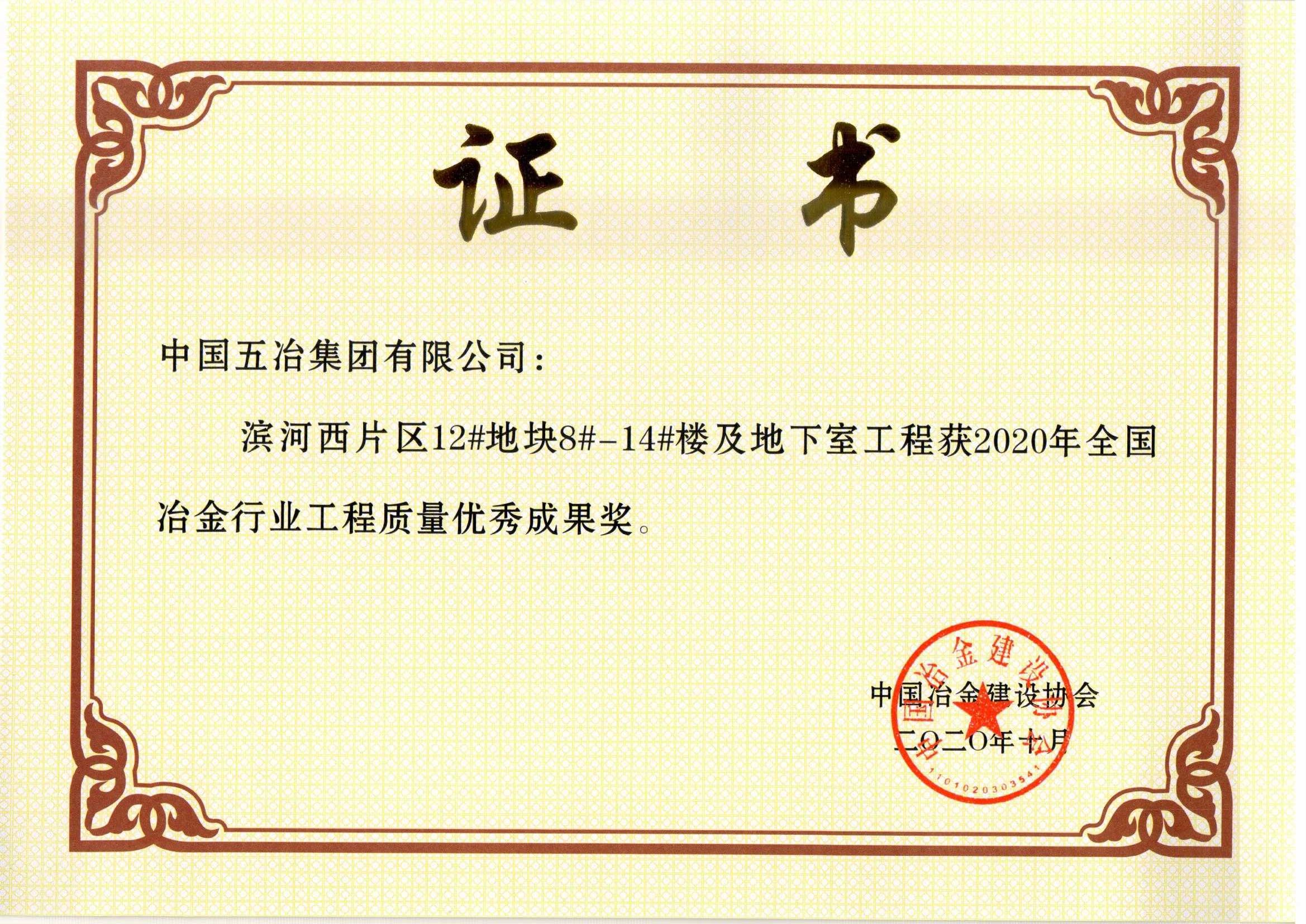 濱河西片區(qū)12#地塊8#-14#樓及地下室工程獲2020年全國冶金行業(yè)工程質量優(yōu)秀成果獎