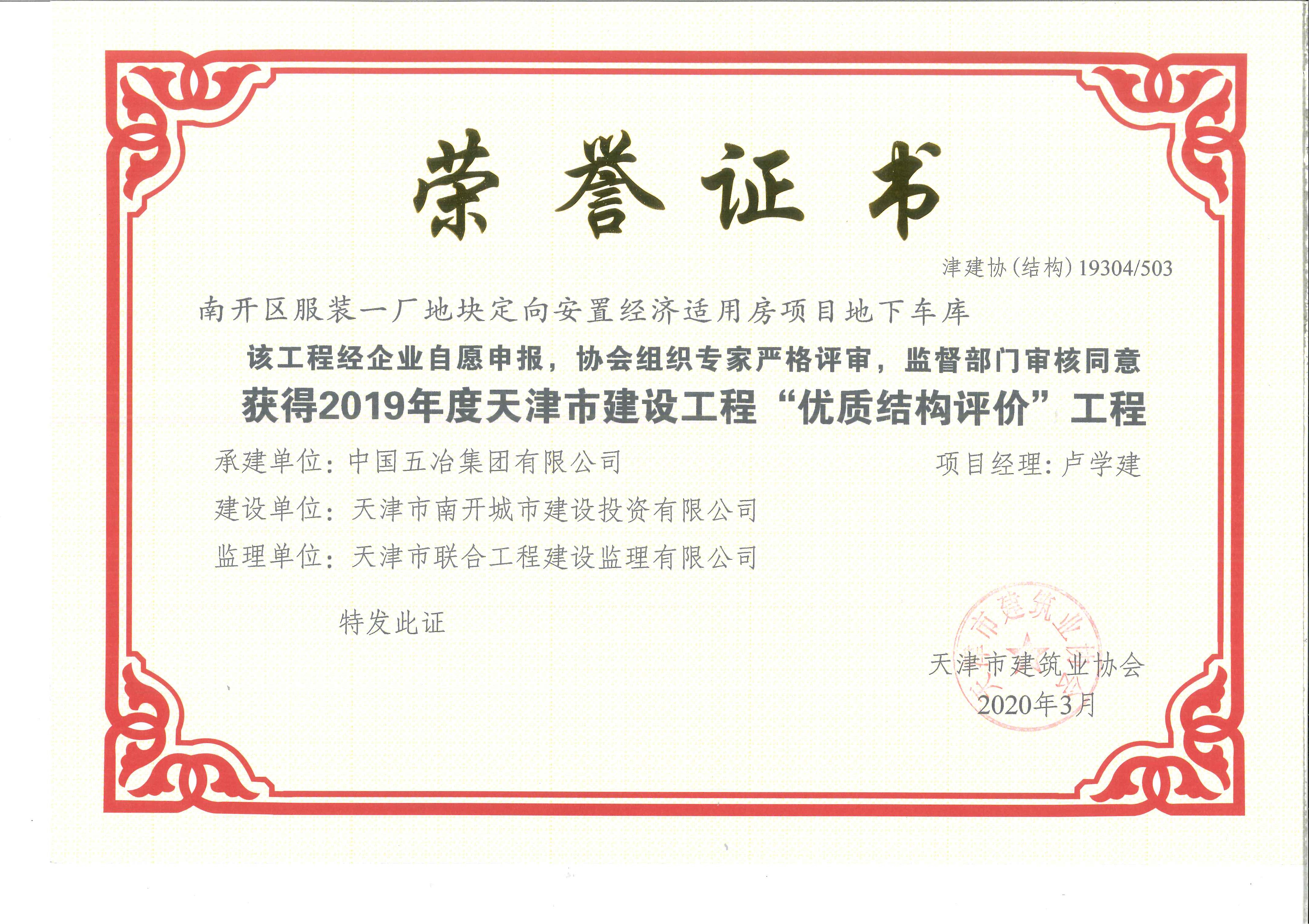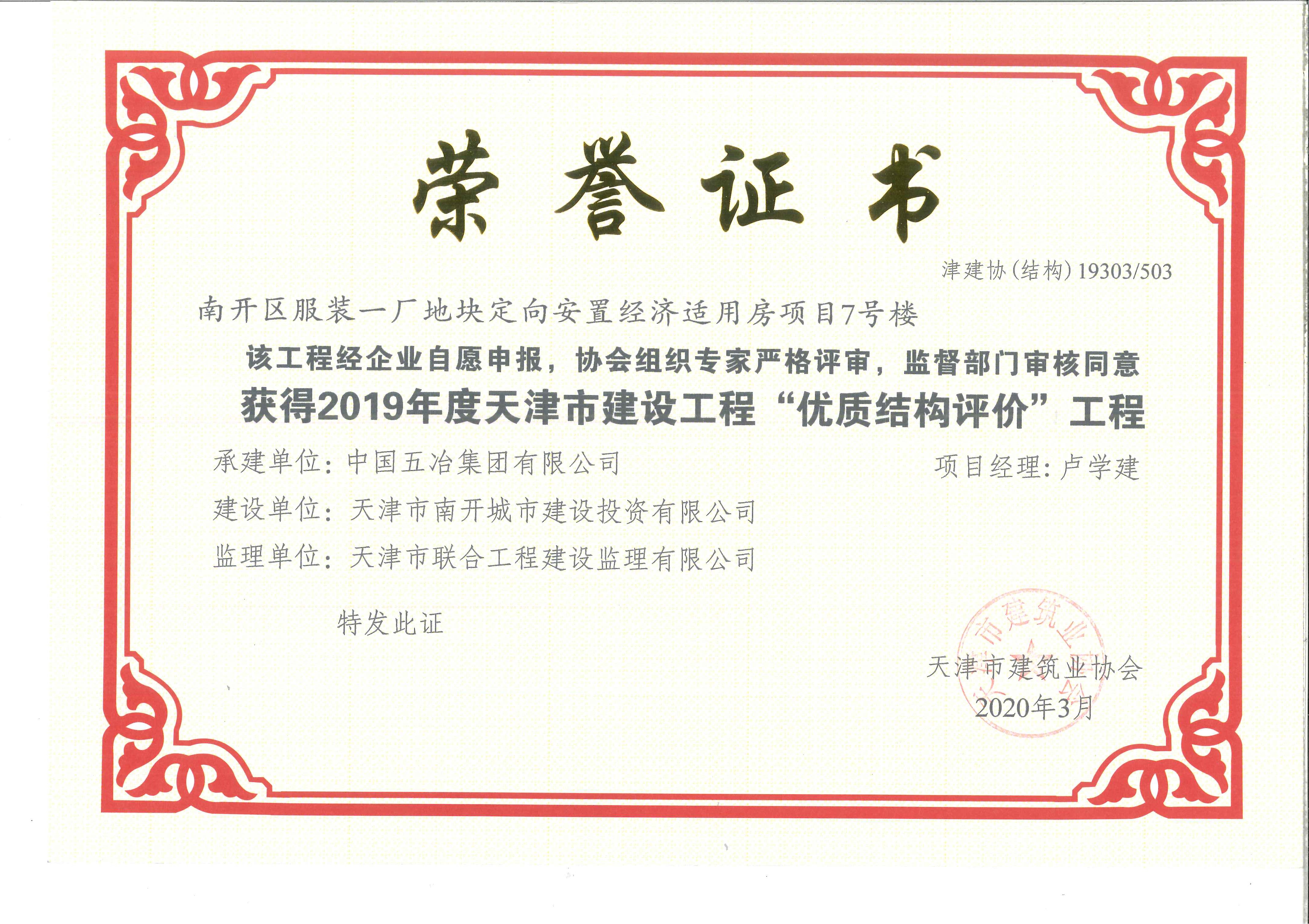 南開區(qū)服裝一廠地塊定向安置經(jīng)濟(jì)適用房-7#樓--2019年度天津優(yōu)質(zhì)結(jié)構(gòu)評價(jià)