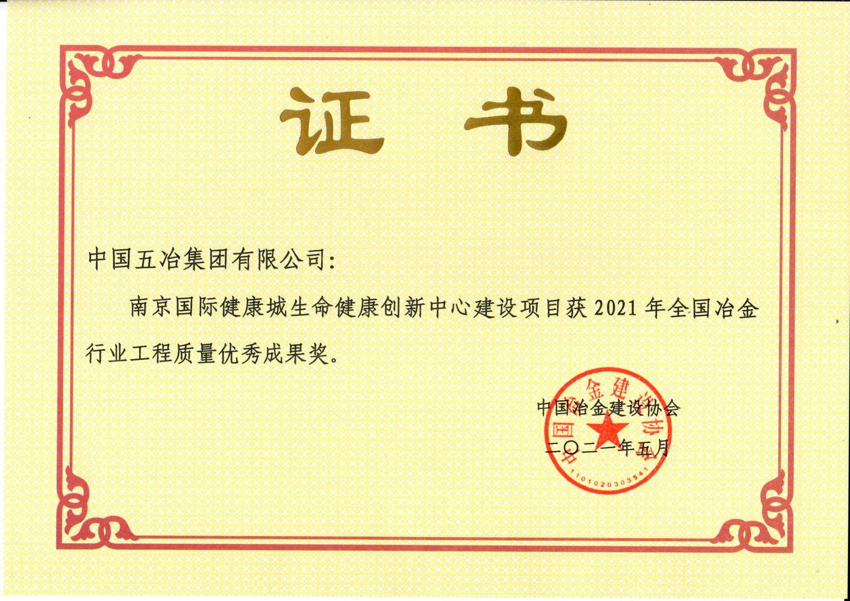 南京國際健康城生命健康創(chuàng)新中心建設(shè)項(xiàng)目——2021年全國冶金行業(yè)工程質(zhì)量優(yōu)秀成果獎