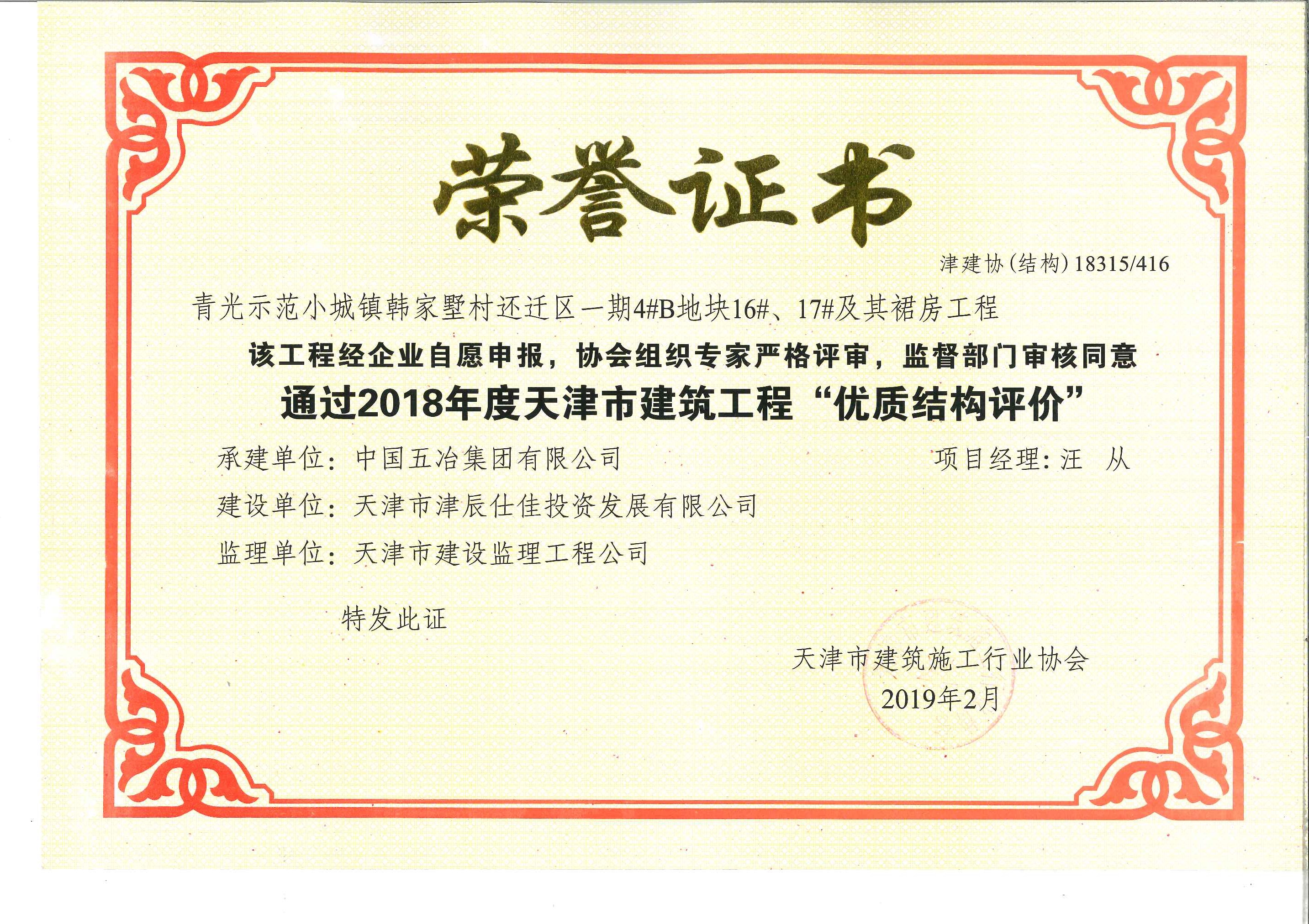 青光示范小城鎮(zhèn)韓家墅村還遷區(qū)一期4#B地塊16#、17#及其裙房工程--2018年度天津市建筑工程“優(yōu)質(zhì)結(jié)構(gòu)評價(jià)”