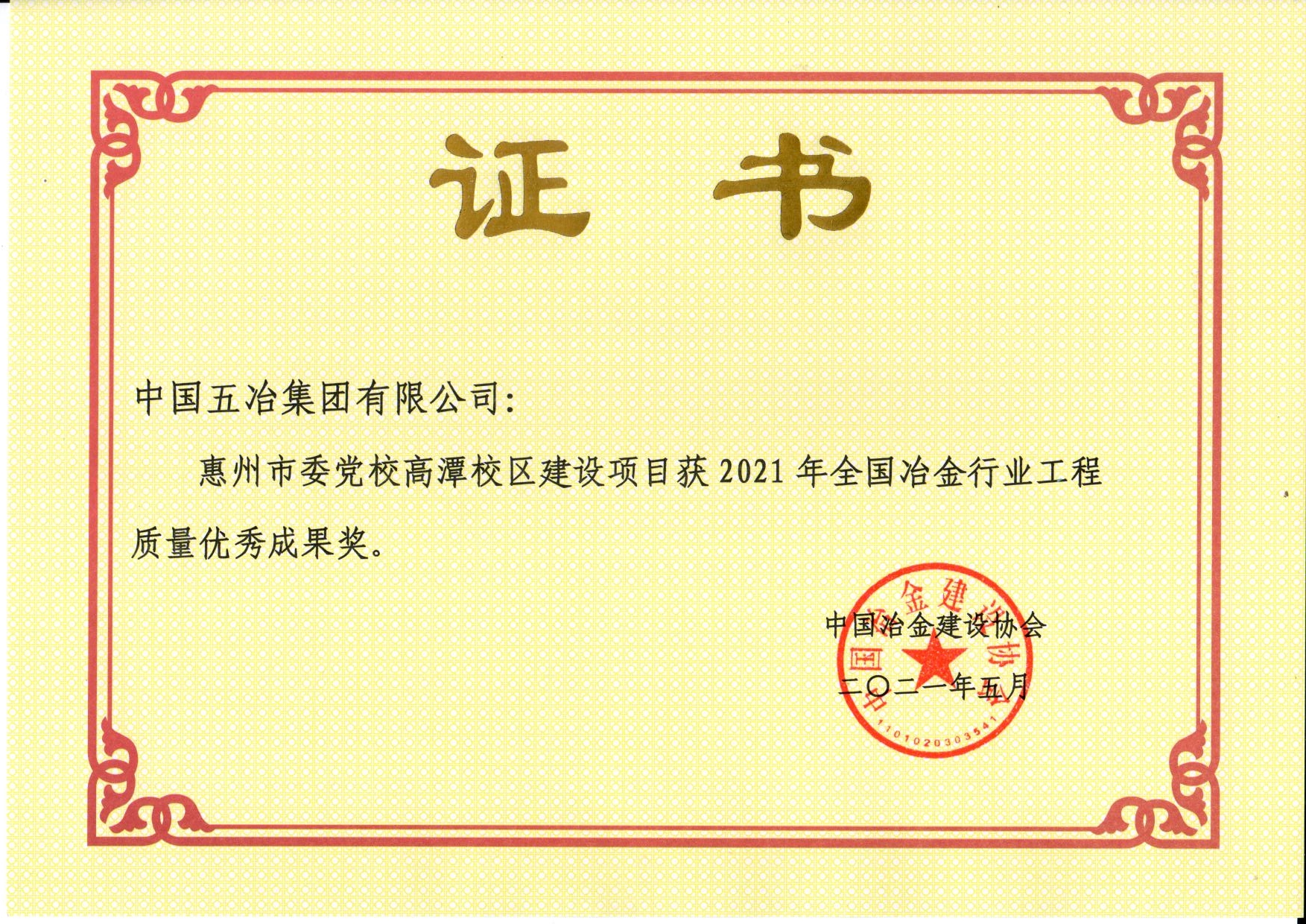 惠州市委黨校高潭校區(qū)建設(shè)項(xiàng)目——2021年全國冶金行業(yè)工程質(zhì)量優(yōu)秀成果獎