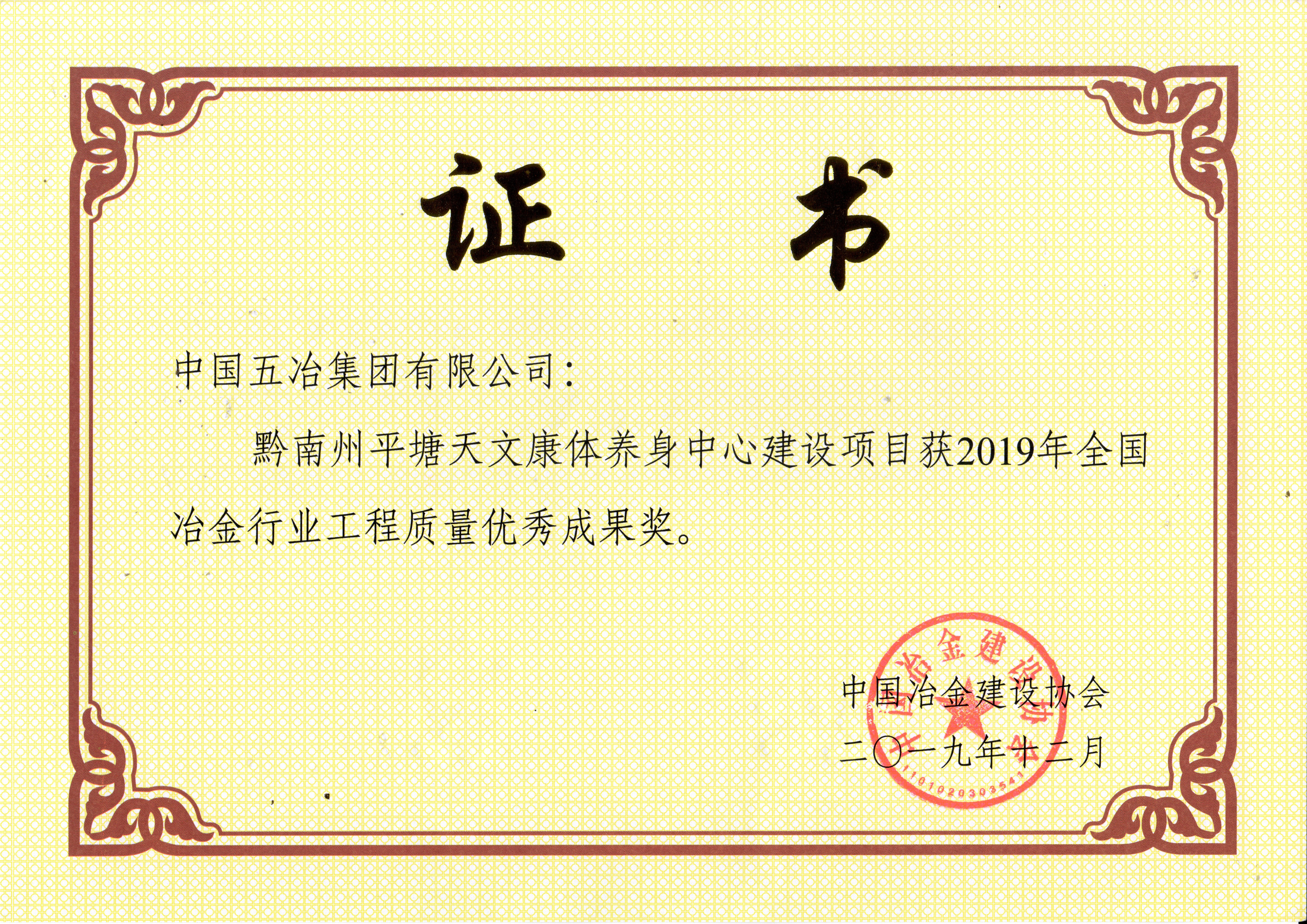 黔南州平塘天文康體養(yǎng)身中心建設(shè)項(xiàng)目——2019年度冶金行業(yè)工程質(zhì)量優(yōu)秀成果