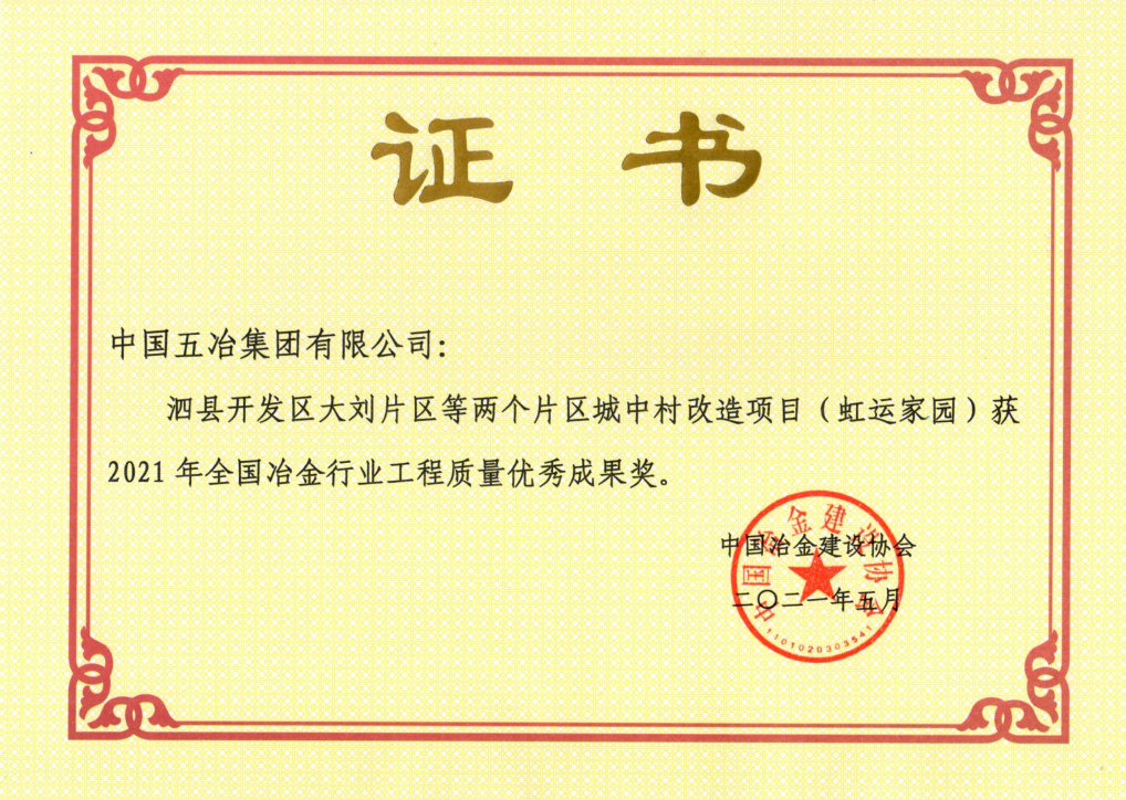 泗縣開發區大劉片區等兩個片區城中村改造項目(虹運家園)--2021年全國冶金行業工程質量優秀成果獎
