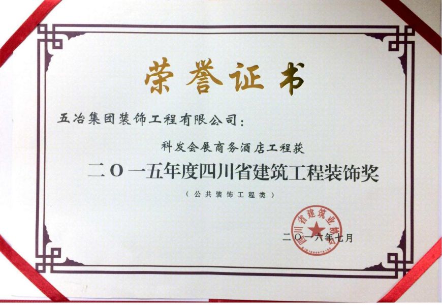 科發會展商務酒店工程-2015年四川省建筑工程裝飾獎(裝飾類)