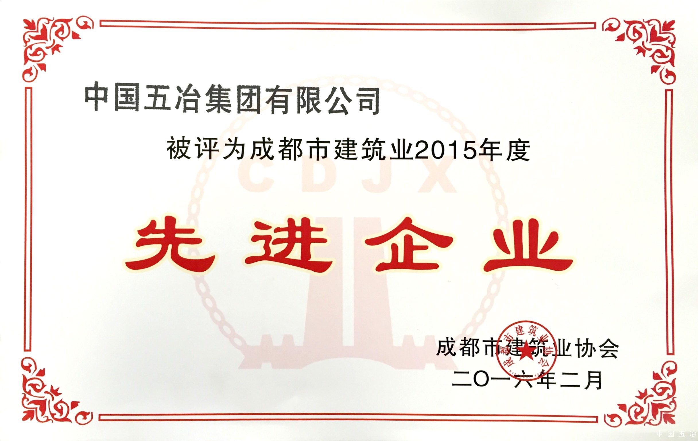 成都市建筑業2014年度先進企業