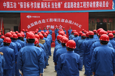 為積極響應(yīng)成都市委、市政府“奮戰(zhàn)180天全面完成‘兩快兩射兩環(huán)’工程建設(shè)動(dòng)員大會(huì)”的要求,12月6日,中國五冶集團(tuán)成溫路改造工程大干180天勞動(dòng)競(jìng)賽動(dòng)員大會(huì)在項(xiàng)目現(xiàn)場(chǎng)舉行。中國五冶集團(tuán)副總經(jīng)理田舜、工會(huì)、文化、安全、工程等部門負(fù)責(zé)人,參戰(zhàn)的路橋公司、上海機(jī)械化公司、鋼構(gòu)公司、四公司相關(guān)領(lǐng)導(dǎo),項(xiàng)目部全體員工以及項(xiàng)目4個(gè)工區(qū)管理人員代表共約100余人參加了動(dòng)員會(huì)。