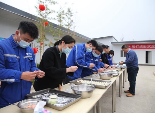 在四川成都,東安湖項目全體員工積極響應號召就地過年,三十清晨,大家熱熱鬧鬧地布置起項目部,開展了迎新春包福餃活動,在大運會主會場建設現場燃起了一番“越燒越旺”的奮進情誼和五冶干勁。