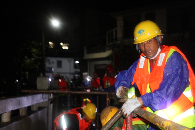 因常綠溪上老橋護欄已有多段被大水沖毀,為保證河堤保護區不受洪水中夾雜的石塊及木頭沖擊,五冶搶險隊伍用鋼管腳手架搭設護欄并用沙袋封堵,經過五小時的艱苦奮戰,構筑了長達兩公里的人民生命財產安全防線。搶險結束后,面對當地電視臺的鏡頭,周善輝坦言:“中國五冶集團是國家的五冶,是人民的五冶,在國家和人民需要時,五冶人必將身先士卒、義不容辭、沖鋒在前。今天搶險只是開始,五冶人還將組建百人預備隊,隨時等候政府及人民的調遣,為保障人民群眾生命財產安全貢獻央企力量。”