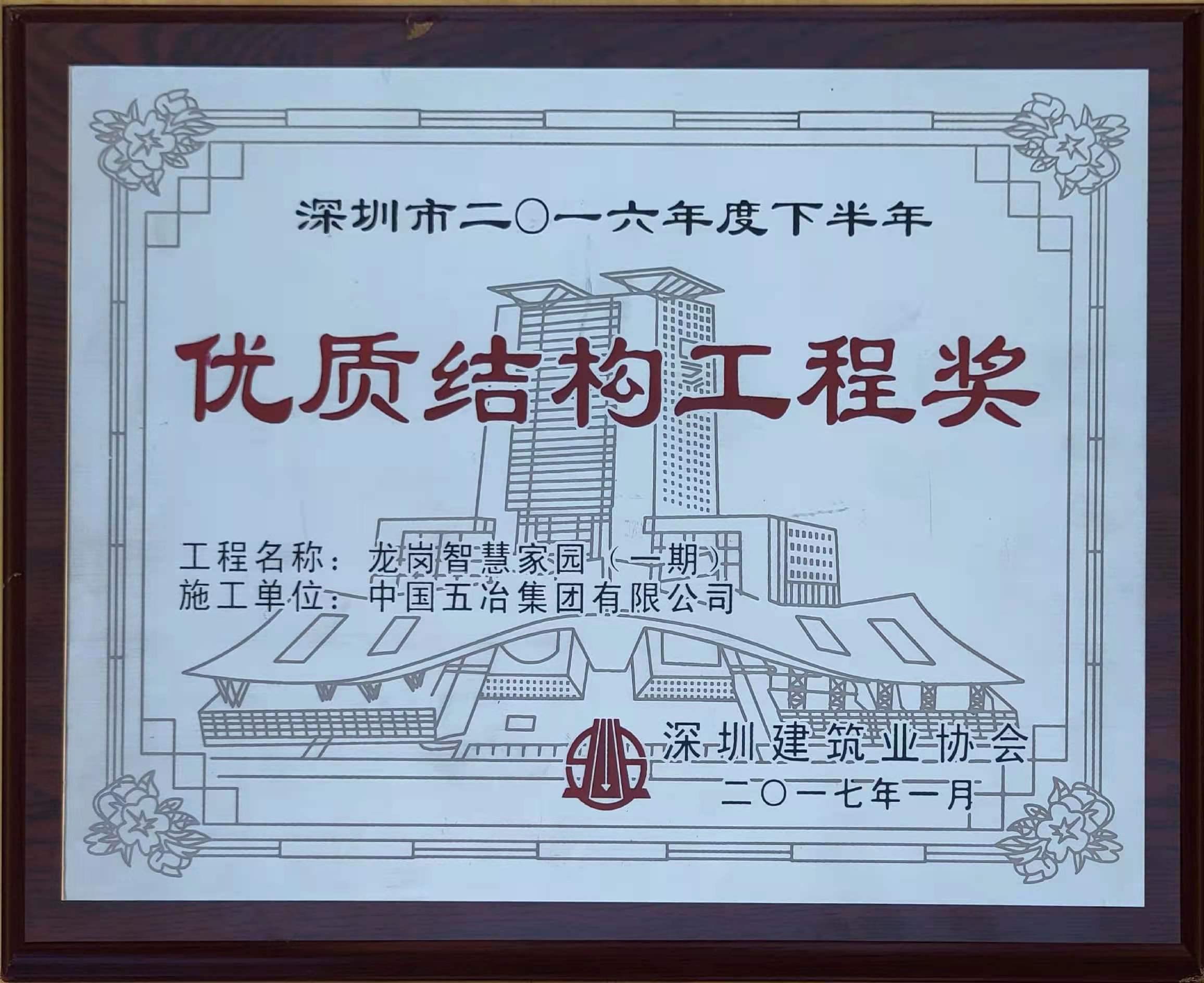 龍崗智慧家園(一期)工程榮獲二零一六年度下半年深圳市優質結構工程獎