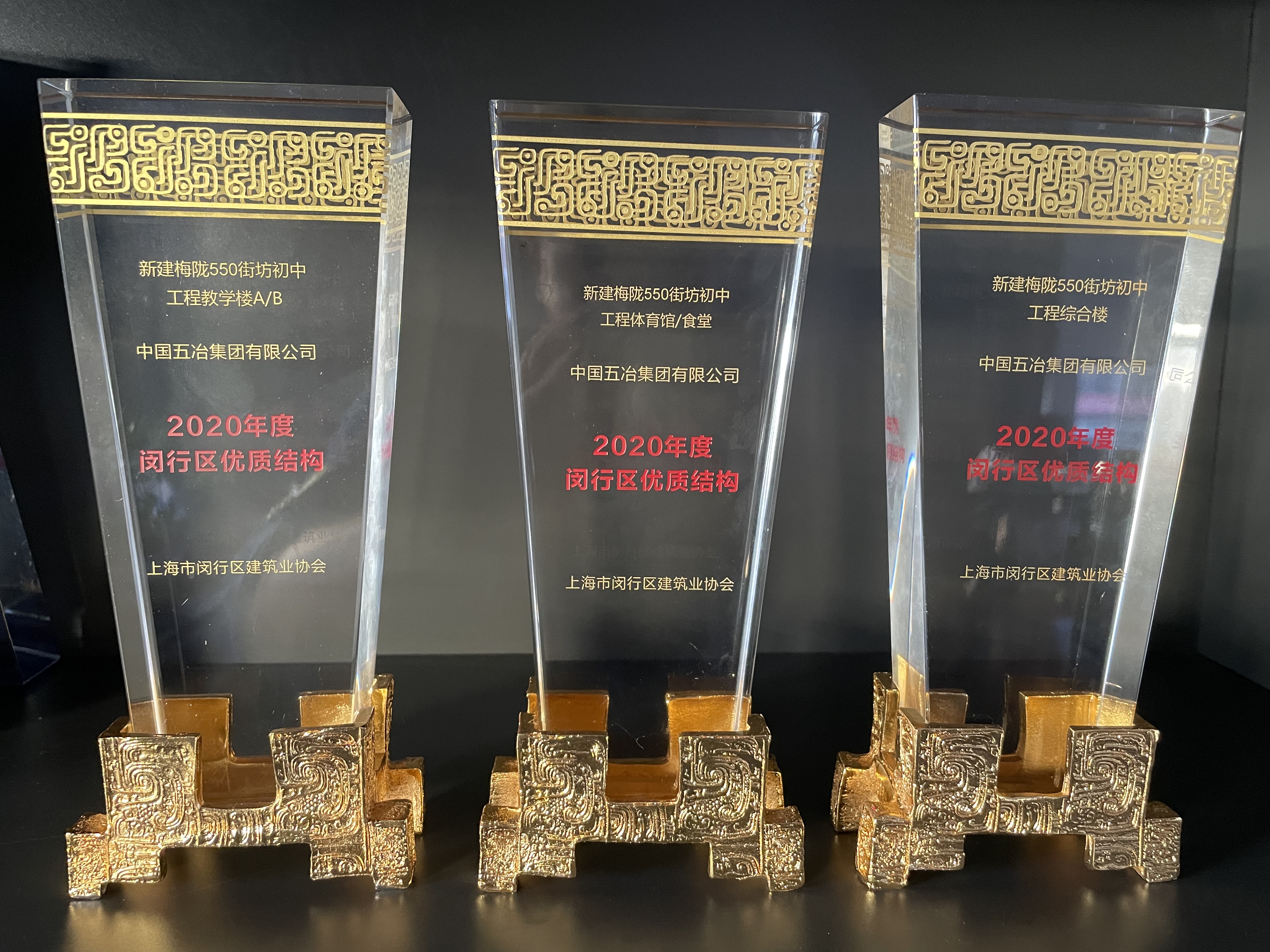 新建梅隴550街坊初中工程教學樓A/B、新建梅隴550街坊初中工程體育館/食堂、新建梅隴550街坊初中工程綜合樓榮獲2020年下半年度上海市閔行區建設工程優質結構