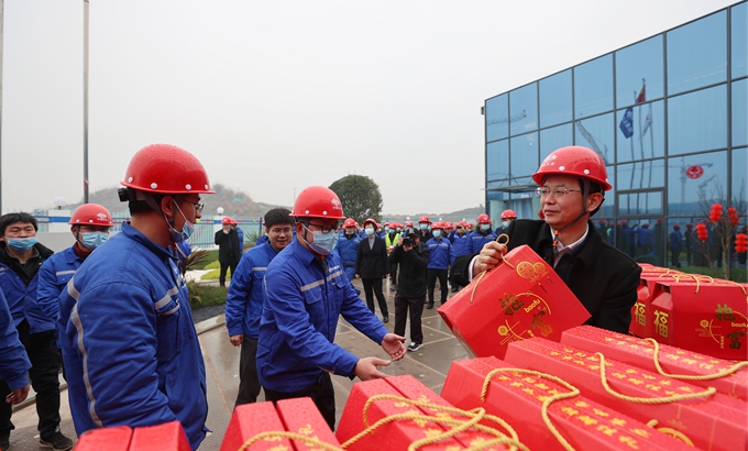 在隨后召開的座談會上,朱永繁董事長代表集團公司黨委會、董事會、經營層向節日期間堅守崗位、辛勤工作的全體員工、合作伙伴及各位工友表示誠摯的慰問,并向大家拜年,祝大家新年快樂,吉祥如意,幸福安康。
