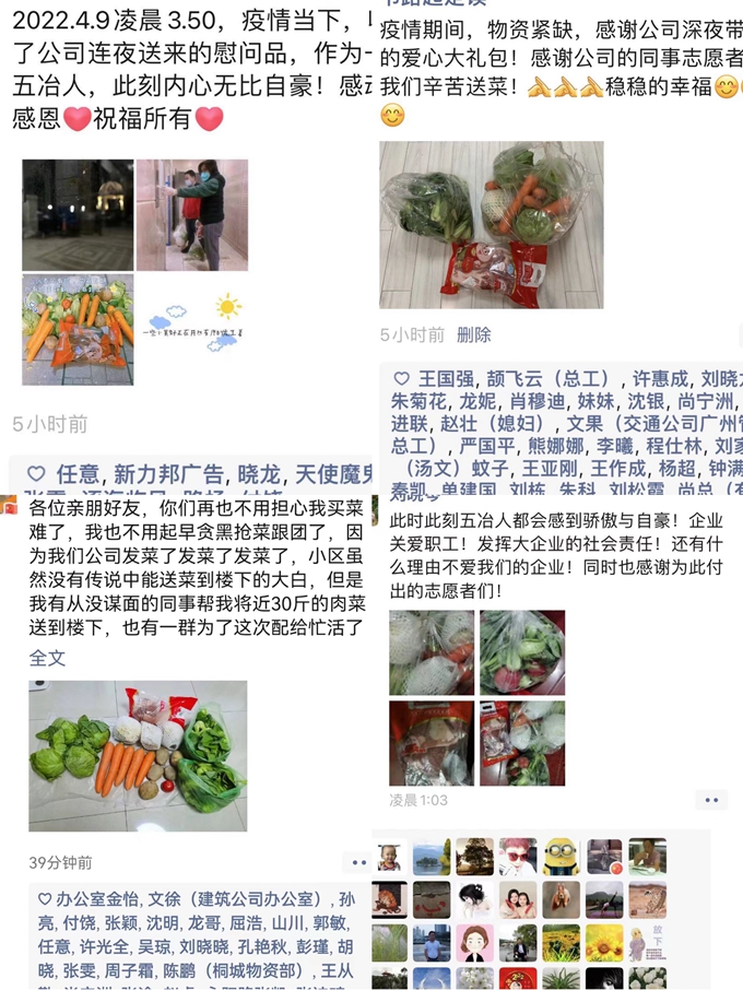 在五冶大禮包連夜送達后,在滬員工的朋友圈、微信群里“炸開了鍋”,既有驚喜,更有感動,最多的則是油然而生的歸屬感、自豪感。“在最需要的時候收到公司的溫暖,作為一名老五冶人,我感到十分驕傲!”一位離退休員工表示。