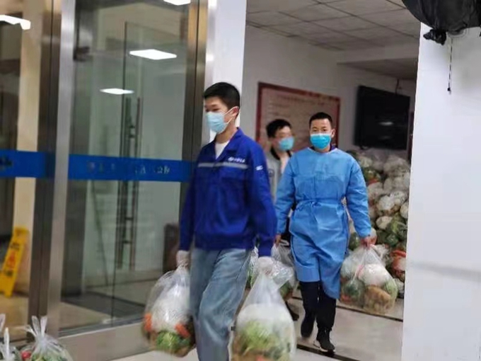 為做好轉運與分發,在滬防疫辦與黨群系統組織百余黨員、團員組成志愿服務團隊。截至4月9日18點,2500份生鮮大禮包和速食生活包已送達,剩余大禮包預計在10日前送抵寶山區域員工及離退休同志家中。目前受交通管制影響,寶山區域外暫無法配送,公司正加緊協調,待條件允許后配發。