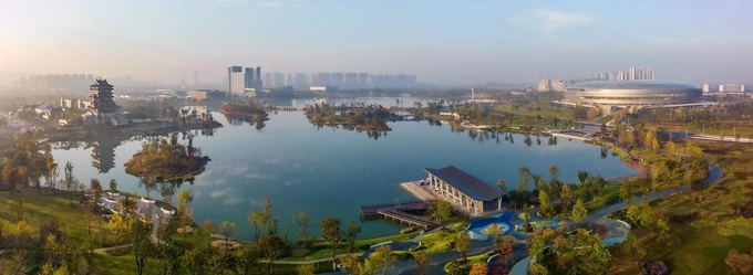 項(xiàng)目整合雕塑、植物、美術(shù)、環(huán)境藝術(shù)等行業(yè)大師及專(zhuān)家,對(duì)東安湖公園景觀整體把關(guān),打造出了“一湖一環(huán) 七島十二景”的巴蜀山水畫(huà)卷和“世界會(huì)客廳”。