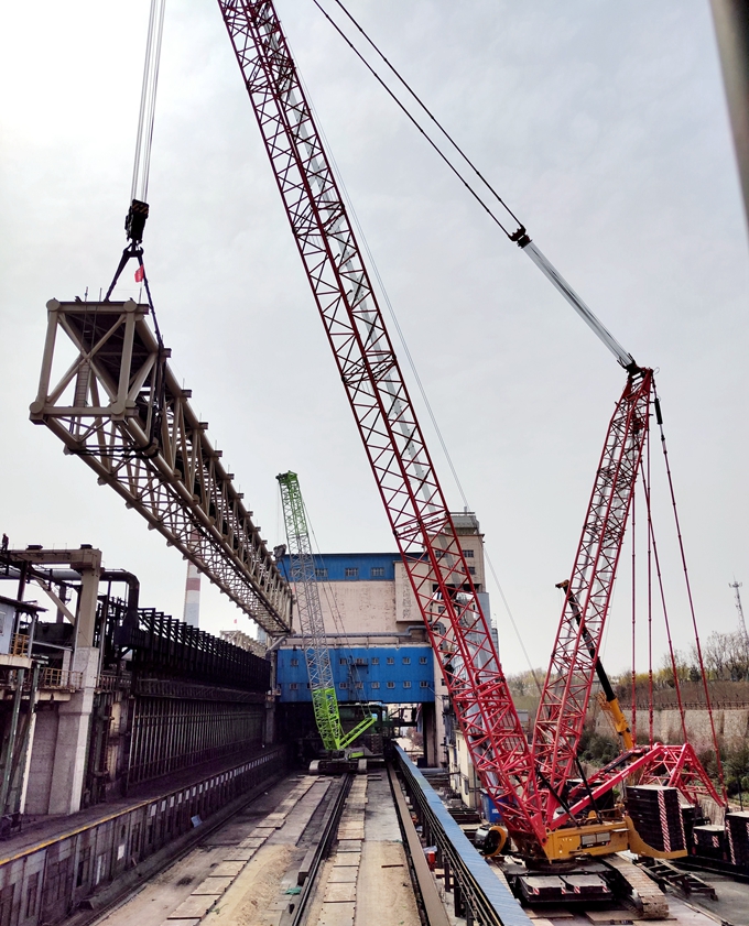 此次吊裝中的兩臺800噸履帶吊雙機抬吊焦爐大棚超重桁架長距離帶負荷行走是全國首次,毫無可借鑒的經驗。在總部機關支撐保障和項目部精心組織下,兩臺大型履帶吊順利完成包括起鉤、抬吊負載行走、跨過滑觸線、空中繞桁架、起吊就位、摘鉤等多個高難度動作,同時在兩臺汽車吊的輔助下順利完成了穿鋼絲繩、鋪路基板、增超起配重、取鋼絲繩等工作。接下來,項目團隊將持續科學謀劃,抓好安全生產,搞好施工質量,將河北華豐焦爐煙氣治理項目打造成經得起考驗的精品工程、示范工程,在業界樹立良好的豐碑,向業主交一份滿意的答卷。(趙洪浩)