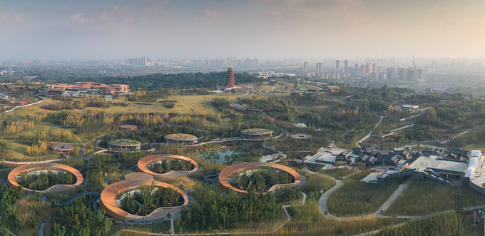 熊貓基地改擴建項目位于四川成都環城生態區,系第31屆世界大學生夏季運動會重要配套設施工程,也是四川省重點工程。項目通過專業的植被建模軟件及AI智能算法的運用,提前描繪了兼顧美感與施工可行性的景觀藍圖,打造出獨具特色的大熊貓主題城市文旅新名片。