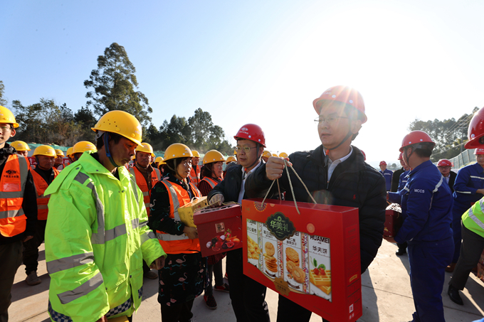朱永繁董事長一行先后來到兩項目現(xiàn)場,詳細了解項目概況、工期進度、策劃編制及執(zhí)行、履約管理、春節(jié)加班安排等方面情況,并向他們送去豬肉、糕點、水果等節(jié)日慰問品。在隨后召開的座談會上,朱永繁董事長代表集團公司向新春佳節(jié)期間堅守崗位的廣大員工、合作伙伴及各位工友表示敬意和感謝,祝大家新年快樂,幸福安康。他指出,2024年是公司“十四五”規(guī)劃極為關(guān)鍵的一年,五冶集團面臨的形勢更加嚴峻,挑戰(zhàn)更高,壓力更大,全體五冶人特別是各級領(lǐng)導(dǎo)務(wù)必拿出拼的精神、干的狀態(tài),做到“放假不放松,休息不休戰(zhàn)”,一如既往抓好安全生產(chǎn)、現(xiàn)場管理、市場拓展等工作,堅決扛起責(zé)任擔(dān)當(dāng),拼搏沖刺奮斗,推動集團公司實現(xiàn)里程碑式的新跨越。
