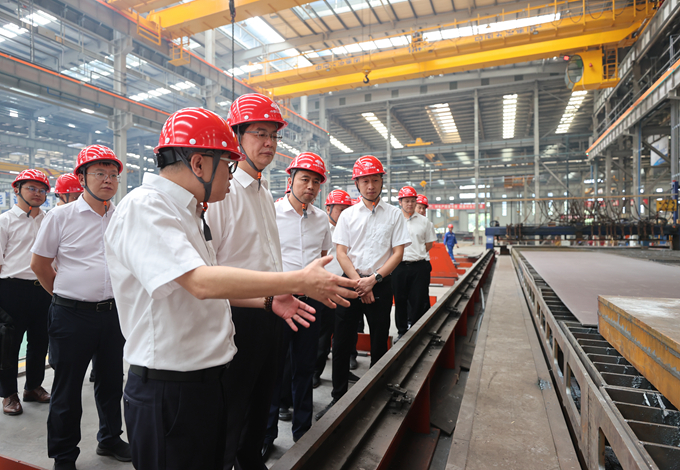 朱永繁董事長一行走進五冶建筑科技產業園現場,實地察看鋼結構智能化生產線建設推進情況,詳細了解相關生產工藝流程、質量安全控制、成品特點及工廠運營狀況。在隨后召開的座談會上,鋼構公司相關負責人匯報了建筑科技產業園、中冶交投善筑及五冶鋼構有關生產經營情況、問題困難以及需幫扶事項,參會領導針對存在問題、建議和意見進行了討論。