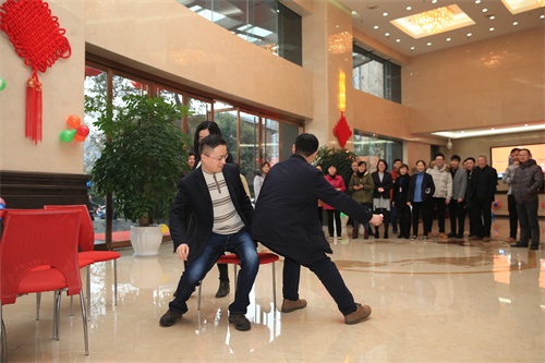 此次迎新春活動以游戲為主,活動現場洋溢著喜慶的氣氛,熱鬧非凡,激動人心的“搶凳子”“三人四足”等互動游戲不斷引發陣陣笑聲,最后,活動在團體拔河游戲的聲聲的吶喊和歡呼雀躍之聲中落下帷幕。