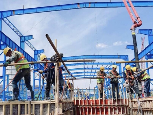 首鋼遷安新能源汽車電工鋼項(xiàng)目人員正在進(jìn)行涂機(jī)段設(shè)備基礎(chǔ)地下室墻板澆筑